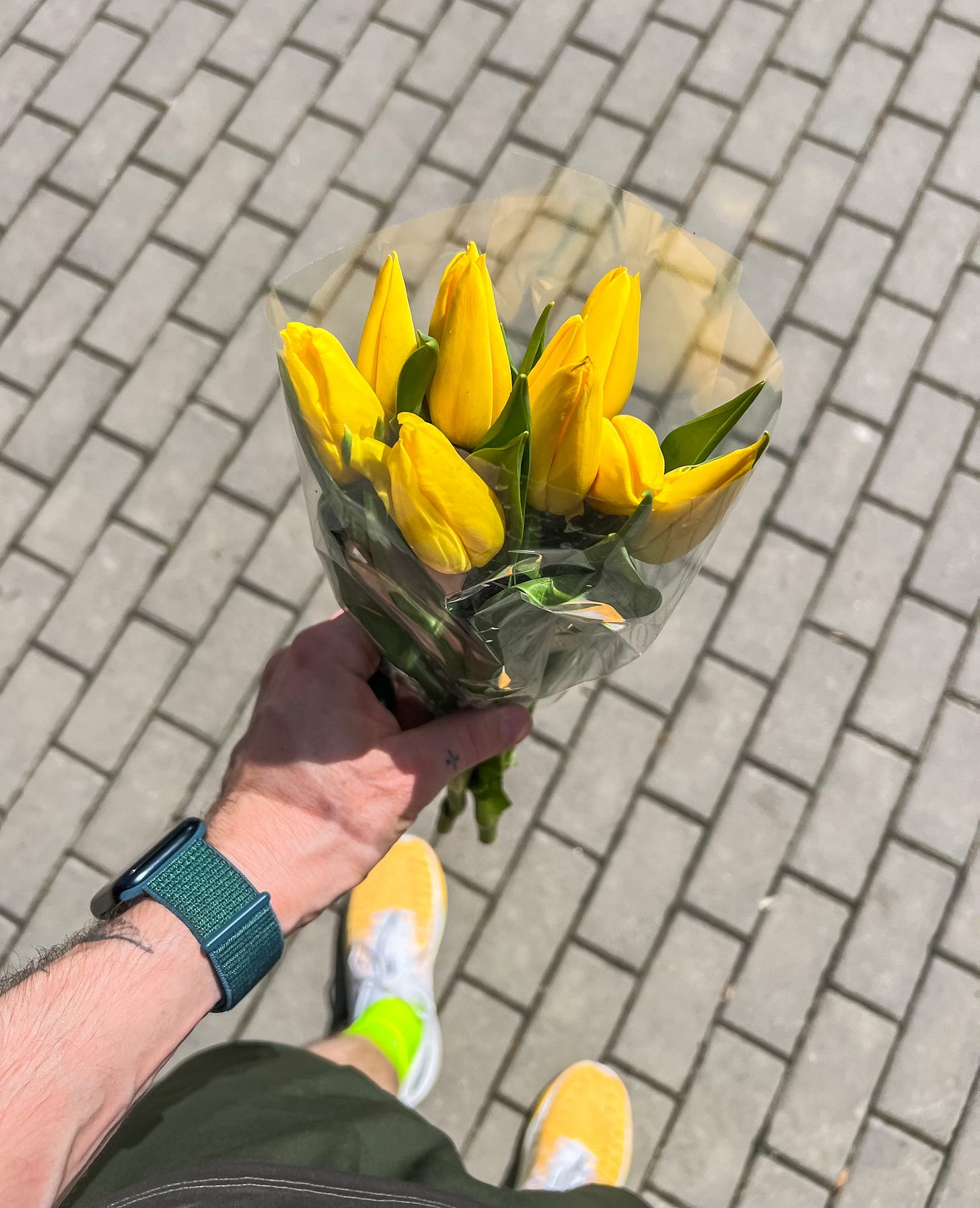 Szerdán 12:30 körül végeztem az edzéssel, majd a piac felé kanyarodtam, hogy bezsákoljak egy kis arany kiwit és lajosmizsei epret. Céltudatosan mission completed, amikor észrevettem, hogy az egyik standnál egy kedves néni valami elképesztően gyönyörű tulipánokat árul, de vagy 100 db-ot mindenféle színben.